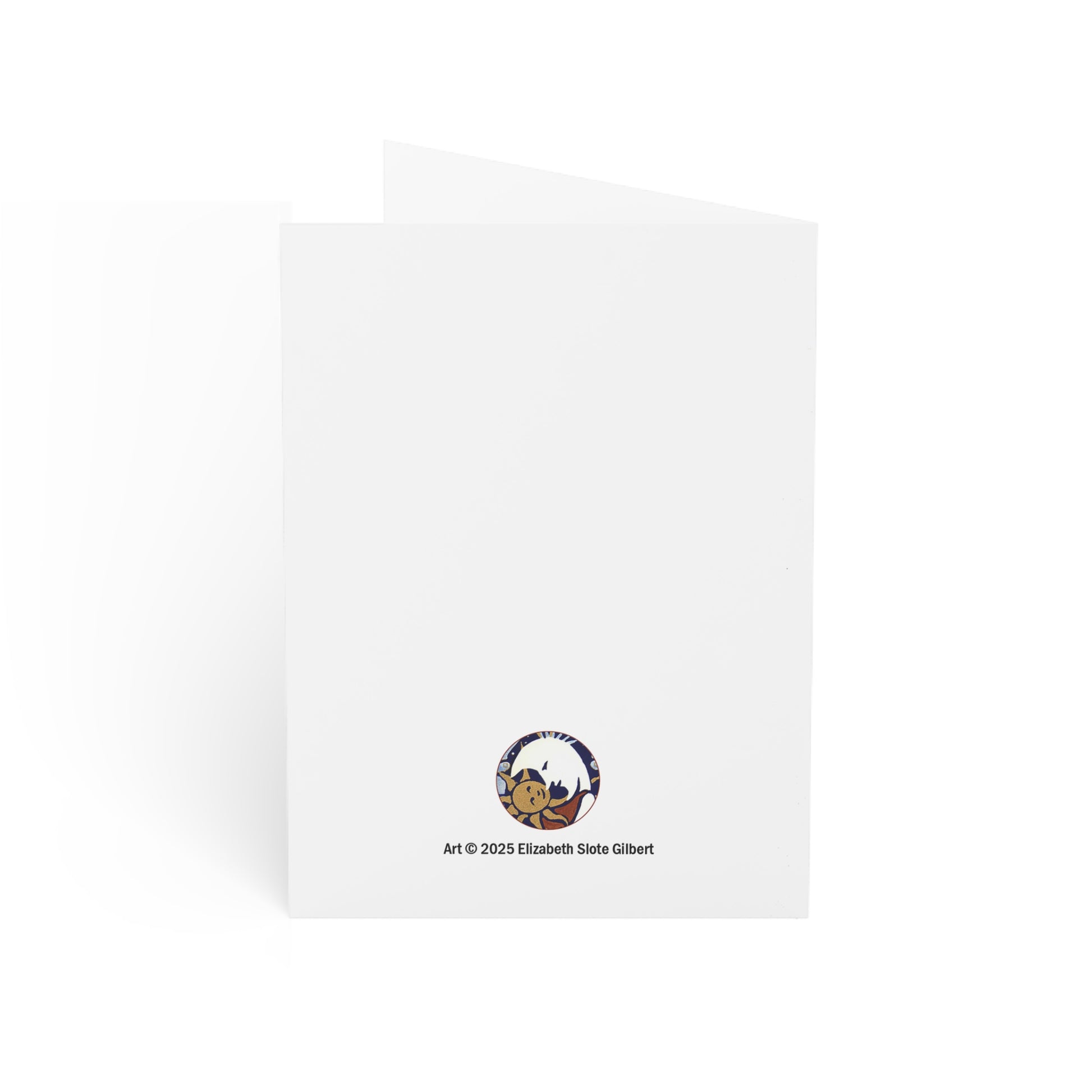 Wakeful daylilies and stars on a summer night. Original silkscreen print, digitized. Vibrant and whimsical, this card is ideal for those who appreciate unique and artistic cards. Relevant for birthdays, anniversaries, and special occasions.